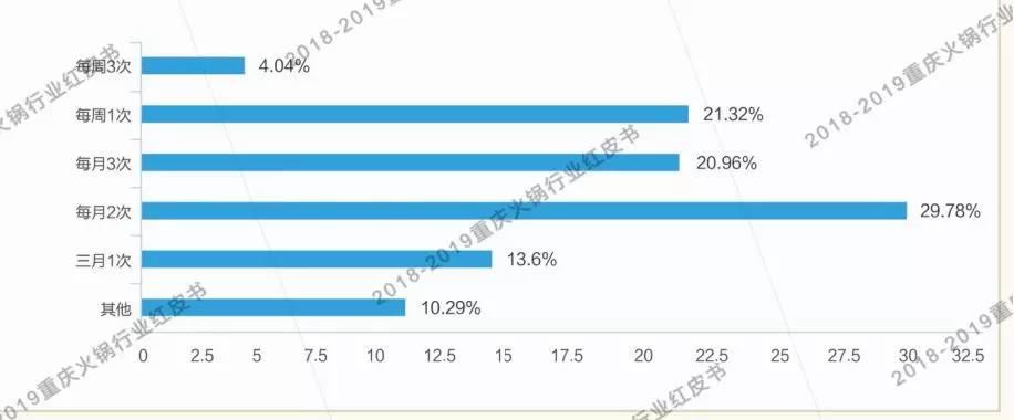 《重慶火鍋紅皮書》調(diào)研團隊根據(jù)對重慶消費者的摸底調(diào)查得出,重慶火鍋消費的絕對主力在80、90后,半數(shù)以上的消費者每月消費火鍋2次以上,可見重慶火鍋已經(jīng)成為重慶市民的日常生活。
